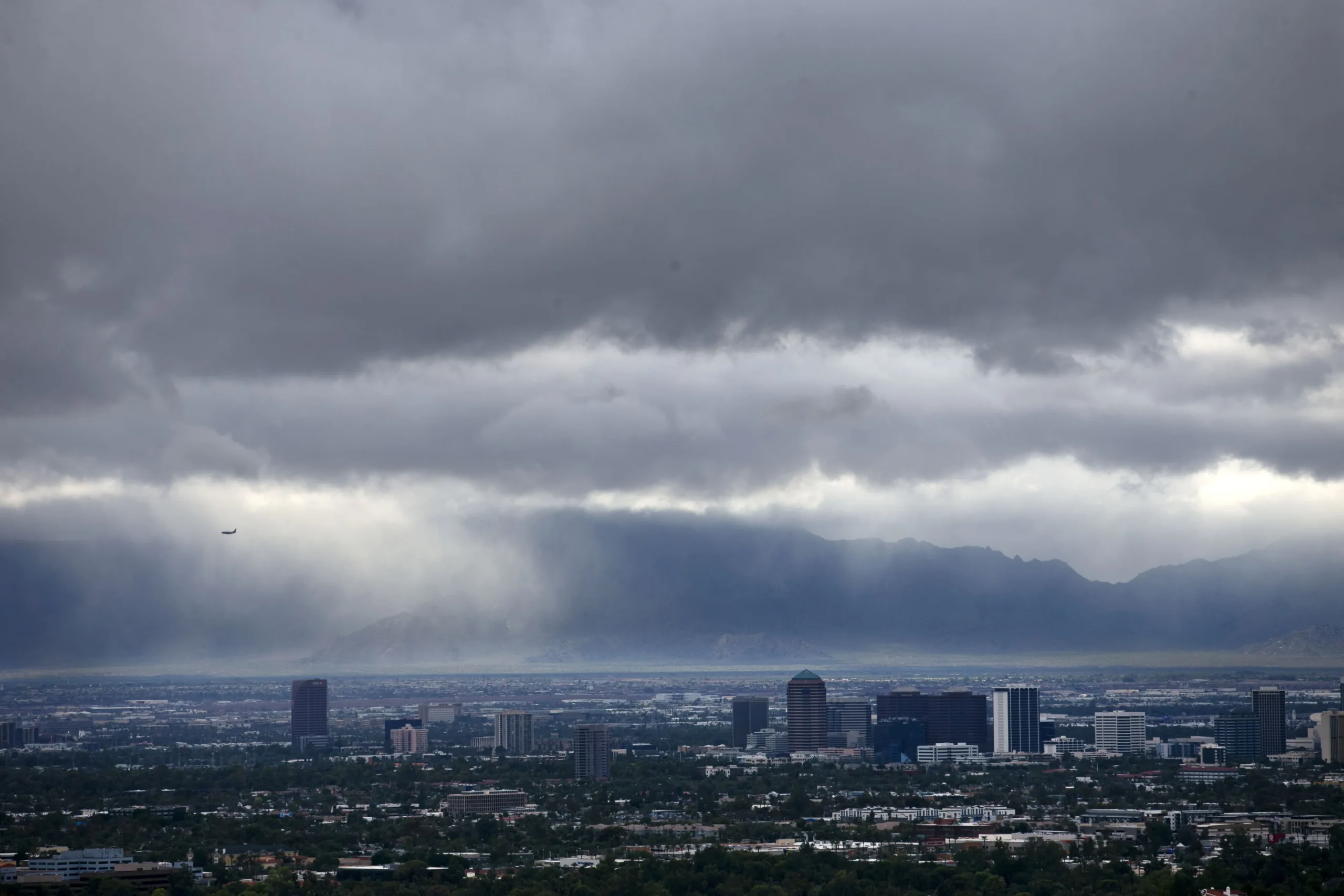 La primera salva de lo que se espera sean varios días de clima tormentoso dejó a Phoenix casi a la mitad del camino hacia un récord diario de precipitaciones.